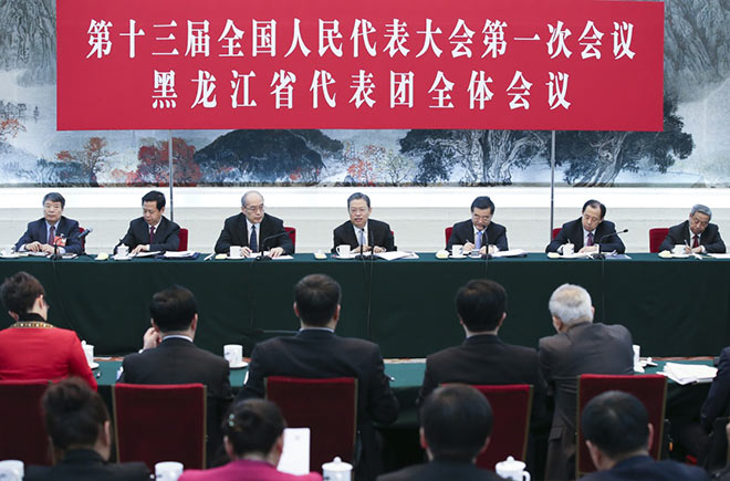 3月5日,中共中央政治局常委、中央纪委书记赵乐际参加十三届全国人大一次会议黑龙江代表团的审议。新华社记者 姚大伟 摄