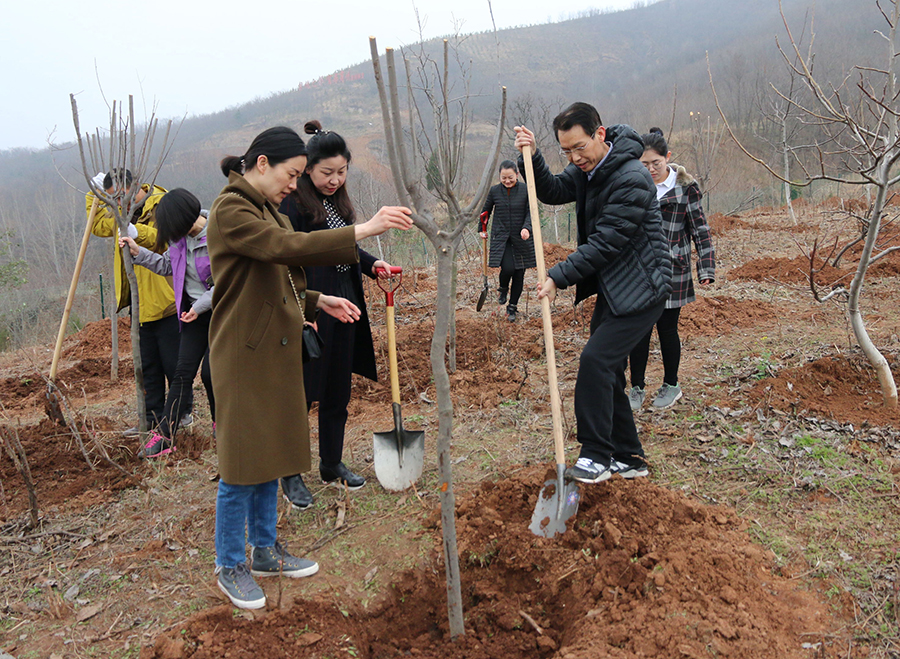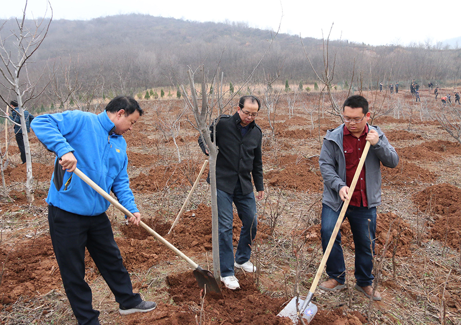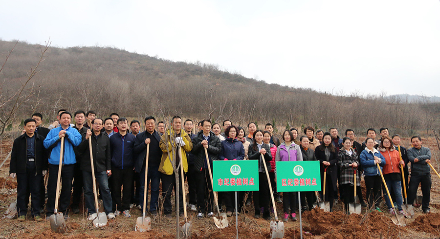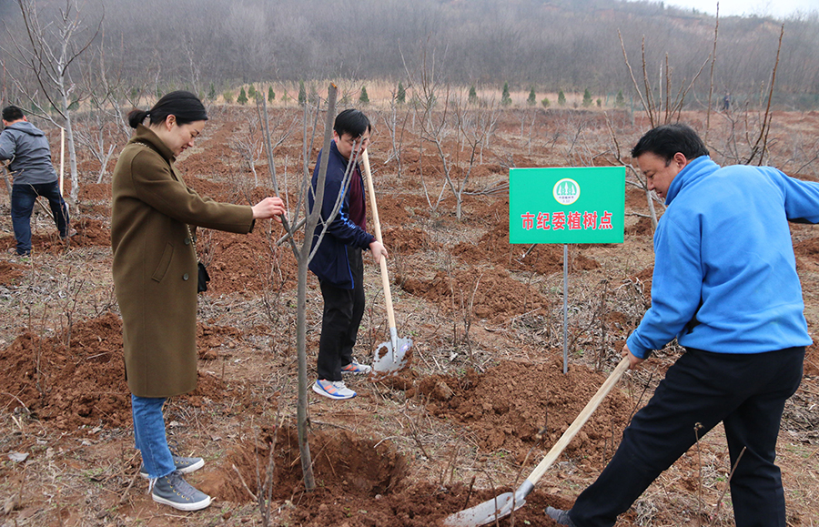 3月9日上午,市、区纪委监委机关干部登上商州区大赵峪办事处芦河涧村坡地参加义务植树活动。