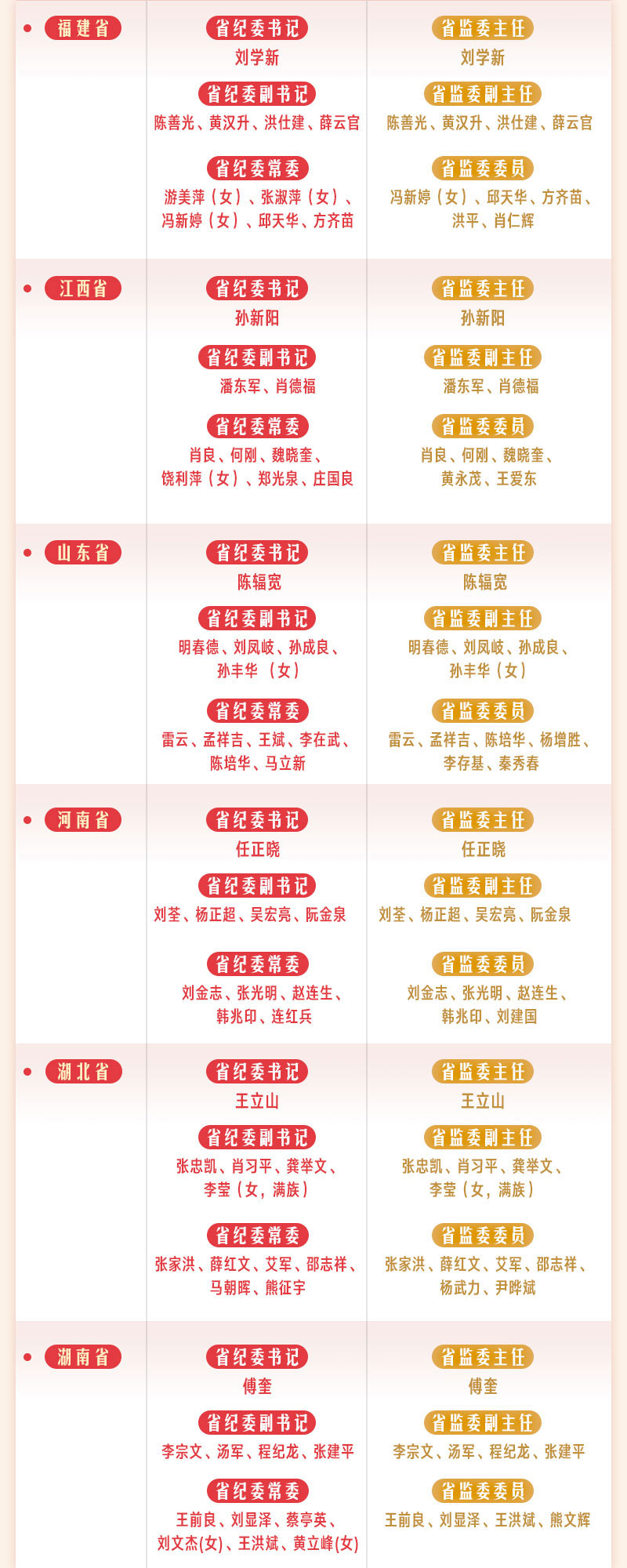 中央纪委国家监委省级纪委监委领导班子成员一览表