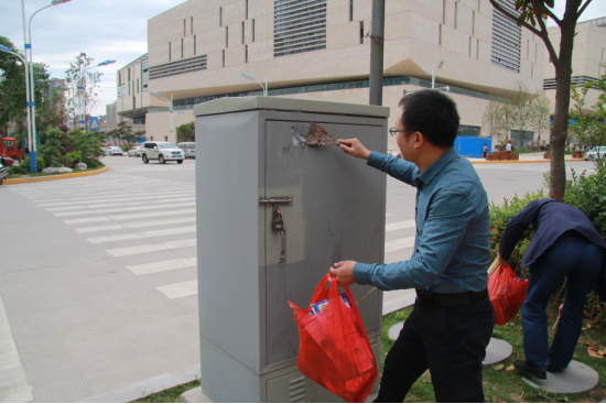 在责任包干路段,纪检监察干部不怕脏不怕累,认真的打扫着路面的垃圾,他们挥着手里的铁铲和火钳,认真清理着电线杆上、墙壁上的小广告,捡拾绿化带中的烟头和垃圾。