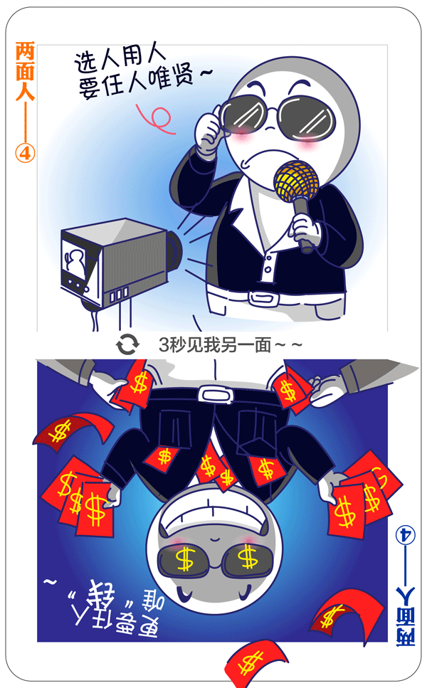 习近平总书记多次强调:“坚决反对搞两面派、做两面人。”大量案件表明,党内有一些人在这方面问题很突出。我们要给政治上蜕变的两面人画个像,摆摆他们的一些表现。今天推出第四期:“有的张口“廉洁”、闭口“清正”,私底下却疯狂敛财。