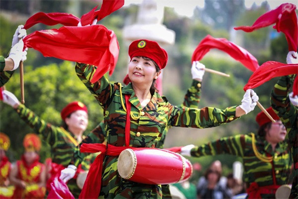 喜庆的锣鼓敲出元旦的祝福,欢快的鼓声叩响新年的脚步,富有特色的腰鼓表演,让市民们共享传统文化,欢度新年佳节。