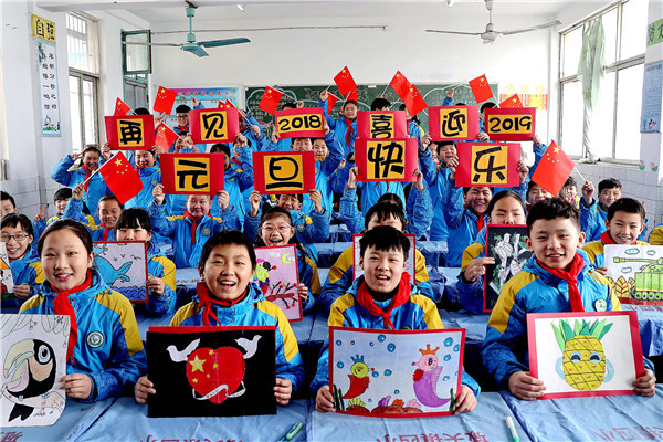 用画笔描绘节日,用色彩挥洒激情。孩子们把对新年的期待画在一张张白纸上,用笔涂下心中的希望。