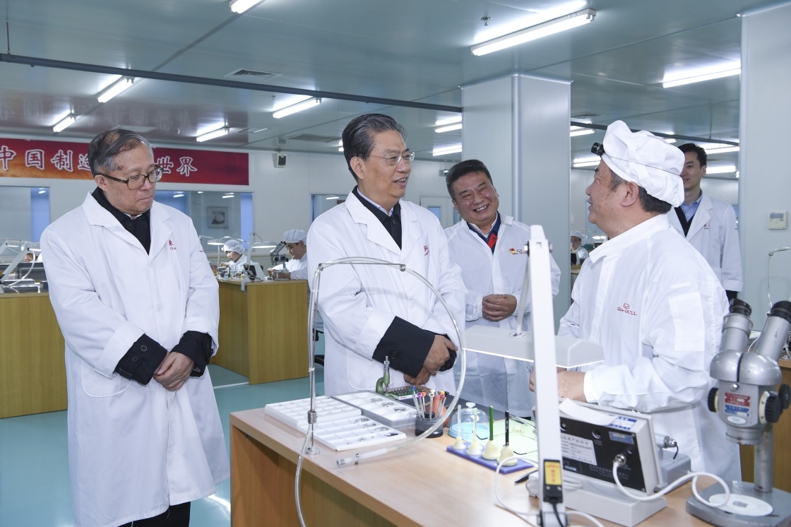 2月25日至26日,中共中央政治局常委、中央纪委书记赵乐际到天津市调研。这是2月25日,赵乐际到天津海鸥表业集团有限公司考察。(新华社记者 张领 摄)