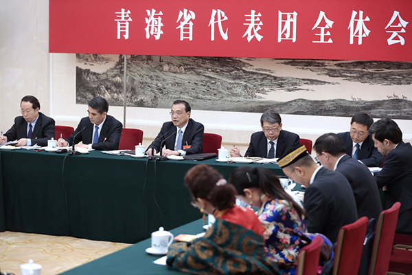 3月7日,中共中央政治局常委、国务院总理李克强参加十三届全国人大二次会议青海代表团的审议。新华社记者 刘彬 摄
