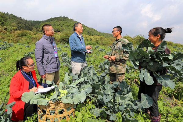 云南省曲靖市麒麟区潇湘街道纪检监察干部来到该街道尖山村田间地头搜集扶贫领域相关问题线索。(张海霞 供图)