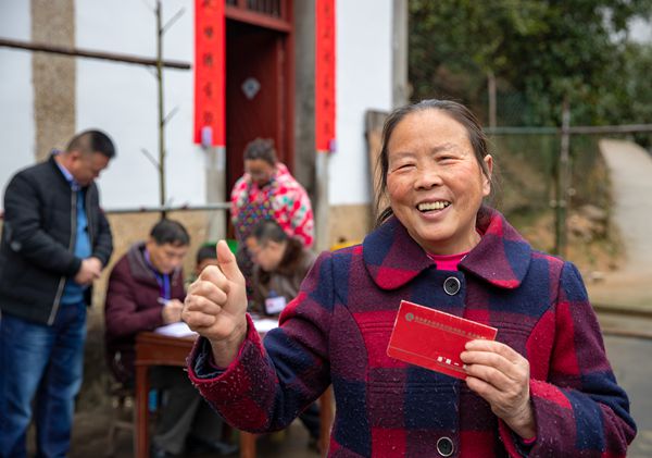浙江省淳安县监委派出千岛湖镇监察办工作人员在千岛湖镇富泽村进行检查时,群众为党和政府的好政策点赞。(毛勇锋 供图)