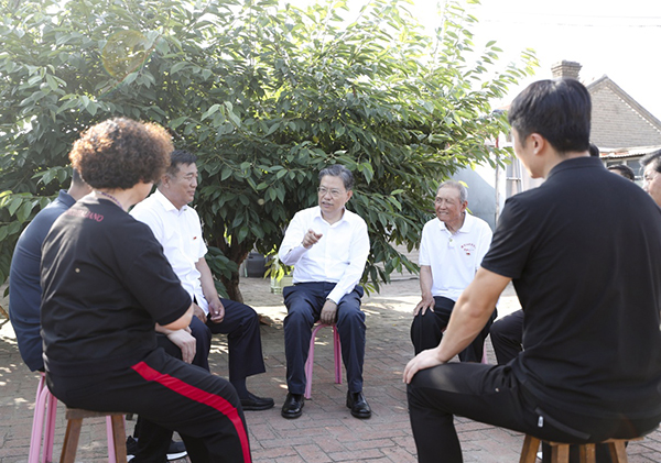 6月19日至21日,中共中央政治局常委、中央纪委书记赵乐际到辽宁省调研。这是6月19日,赵乐际在辽宁省海城市朱家村与村干部和村民代表面对面交流。新华社记者 丁海涛 摄