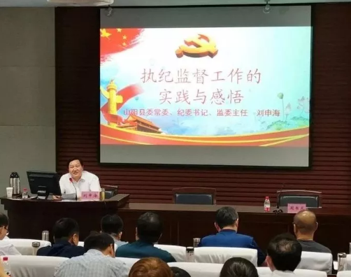 7月3日,山阳县委常委、纪委书记、监委主任刘申海在陕西省委党校为全省纪检监察干部培训班第3期(县区纪委书记、副书记)学员作专题授课。