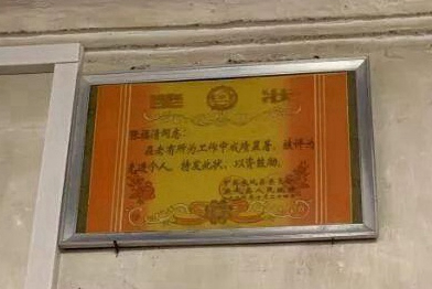 在张富清家挂着一幅奖状,那是他1997年获得的。奖状上写着:“张富清同志:在老有所为工作中成绩显著,被评为先进个人。特发此状,以资鼓励。”张富清将奖状装裱进了玻璃相框,端端正正挂在客厅墙上最显眼的地方。