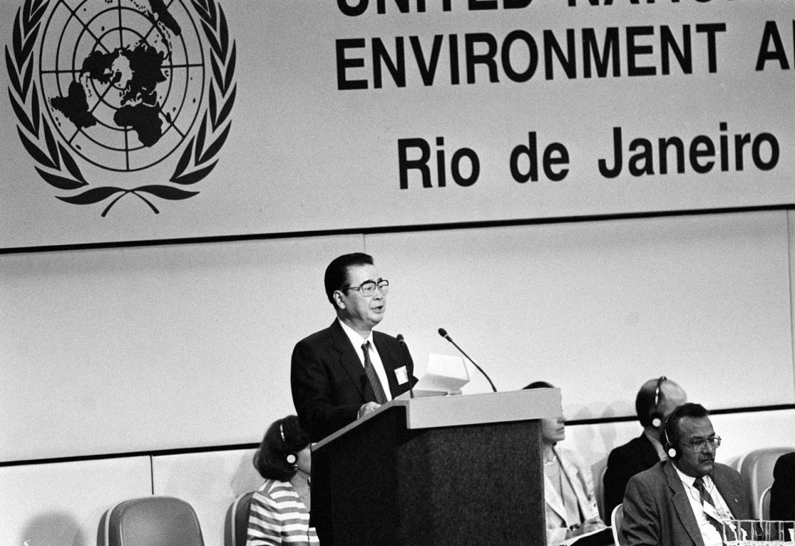 1992年6月12日,李鹏同志在联合国环境与发展大会首脑会议上发言。新华社记者 李生南 摄