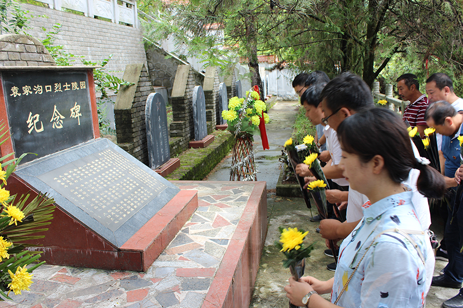 在小河镇袁家沟烈士陵园,全体党员干部认真聆听红二十五军在袁家沟设伏一举歼灭国民党追击旅的故事,共同追忆广大革命群众在党的领导下英勇奋战的光辉事迹,缅怀革命先烈,面对鲜红的党旗,庄严重温入党誓词,满怀崇敬之情向革命烈士敬献鲜花、鞠躬哀思。在袁家沟苏维埃旧址,大家实地感受了战争年代环境之艰苦、战斗之艰辛,更是倍觉胜利来之不易,身上责任重大。