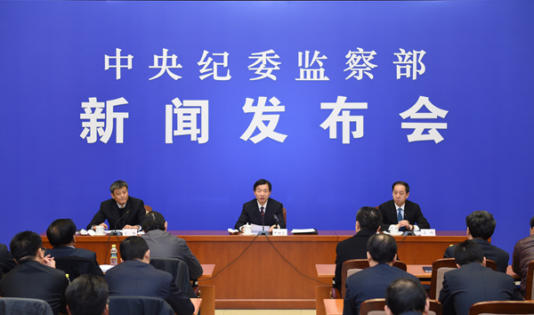 1月7日,中央纪委监察部举行新闻发布会。中央纪委副书记、监察部部长黄树贤通报一年来党风廉政建设和反腐败斗争取得的进展和成效。 中央纪委监察部网站 李放 摄