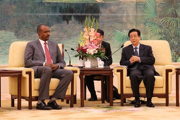 中共中央书记处书记、中央纪委副书记赵洪祝26日在北京会见了政府投资部长穆达萨尔率领的苏丹全国大会党高级干部研修班一行。(中央纪委监察部网站 祖晓冬 摄)
