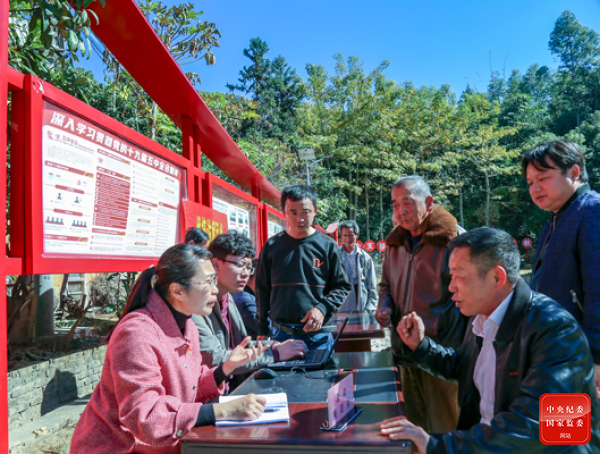 福建省仙游县纪委监委聚焦侵害群众利益的腐败和作风问题,在全县18个乡镇(街道)建立流动接访点,通过开展接访听民意、察民情,切实维护群众利益。图为1月21日,该县纪委监委干部在龙华镇红旗村接访。(吴震 摄)
