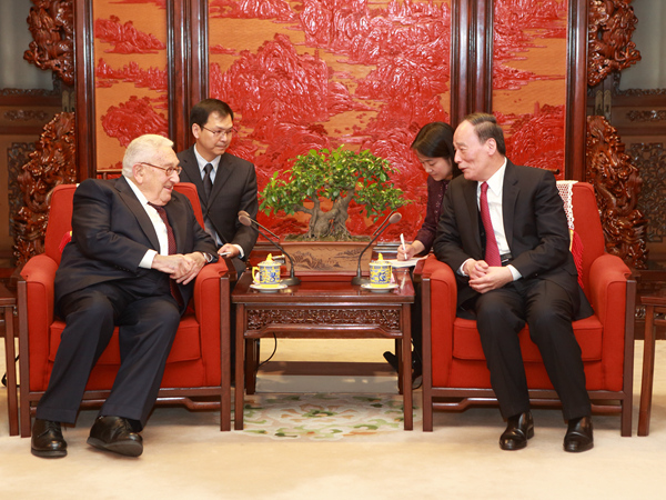 中共中央政治局常委、中央纪委书记王岐山2日在中南海紫光阁会见美国前国务卿基辛格。