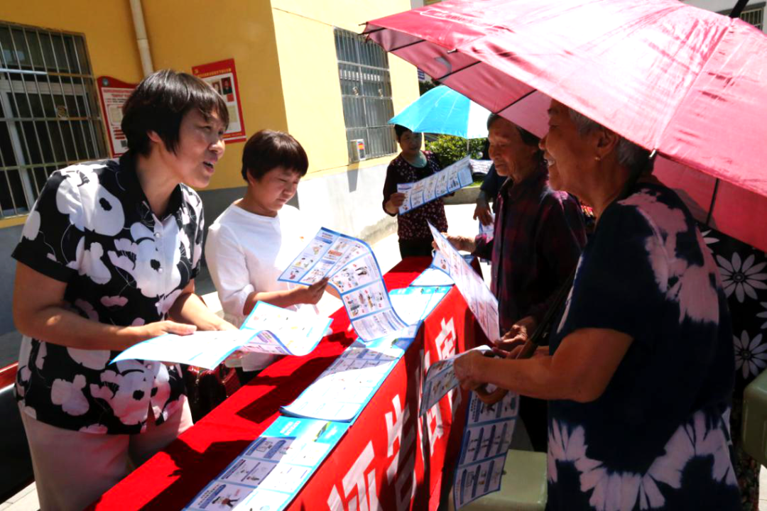 商州区纪委向群众发放纪检监察信访举报宣传彩页。