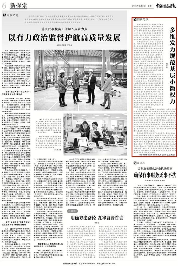 3月2日,《中国纪检监察报》刊发我市洛南县纪委书记刘雪锋署名文章《多维发力规范基层小微权力》,现将全文转载如下。